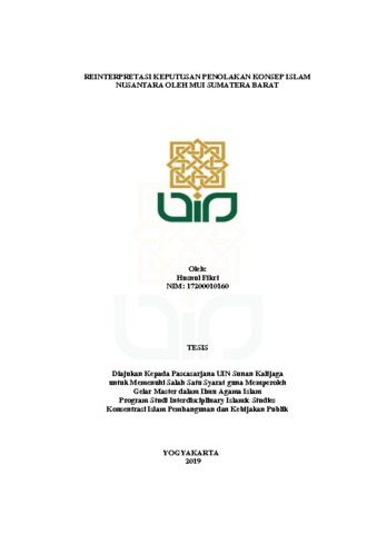 Husnul Fikri, NIM. 17200010160 (2019) REINTERPRETASI KEPUTUSAN PENOLAKAN KONSEP ISLAM NUSANTARA OLEH MUI SUMATERA BARAT. Masters thesis, UNIVERSITAS ISLAM NEGERI SUNAN KALIJAGA YOGYAKARTA.