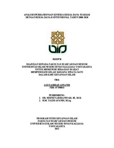 AGUS AHMAD AFFANDI , NIM: 07390043 (2012) ANALISIS PERBANDINGAN KINERJA REKSA DANA SYARIAH DENGAN REKSA DANA KONVENSIONAL TAHUN 2008-2010. Skripsi thesis, PERPUSTAKAAN UIN SUNAN KALIJAGA.
