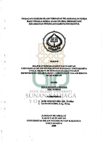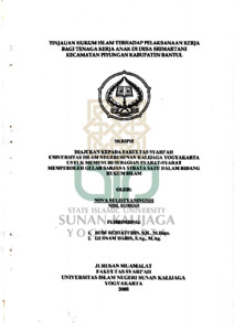 Nova Sulistyaningsih, NIM.: 03380365 (2008) TINJAUAN HUKUM ISLAM TERHADAP PELAKSANAAN KERJA BAGI TENAGA KERJA ANAK DI DESA SRIMARTANI KECAMATAN PIYUNGAN KABUPATEN BANTUL. Skripsi thesis, UIN SUNAN KALIJAGA YOGYAKARTA.
