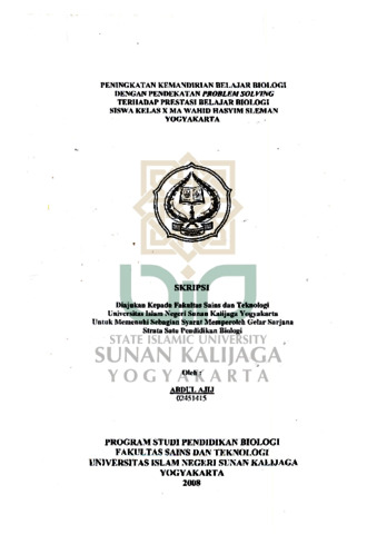 Text (PENINGKATAN KEMANDIRIAN BELAJAR BIOLOGI DENGAN PENDEKATAN PROBLEM SOLVING TERHADAP PRESTASI BELAJAR BIOLOGI SISWA KELAS X MA WAHID HASYIM SLEMAN YOGYAKARTA)