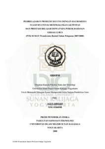 Text (PEMBELAJARAN PROBLEM SOLVING DENGAN MACROMEDIA FLASH MX UNTUK MENINGKATKAN AKTIVITAS DAN PRESTASI BELAJAR SISWA PADA POKOK BAHASAN GERAK LURUS (PTK DI MAN WONOKROMO BANTUL TAHUN PELAJARAN 2007-2008))