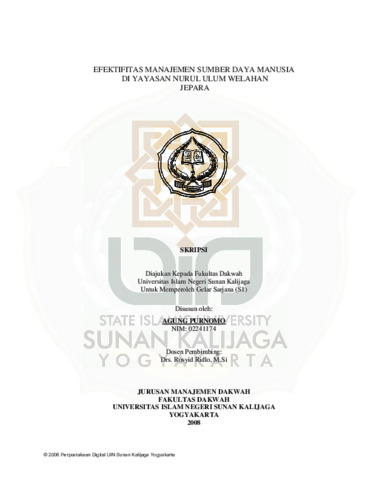 Agung Purnomo, NIM.: 02241174 (2008) EFEKTIFITAS MANAJEMEN SUMBER DAYA MANUSIA DI YAYASAN NURUL ULUM WELAHAN JEPARA. Skripsi thesis, UIN SUNAN KALIJAGA YOGYAKARTA.
