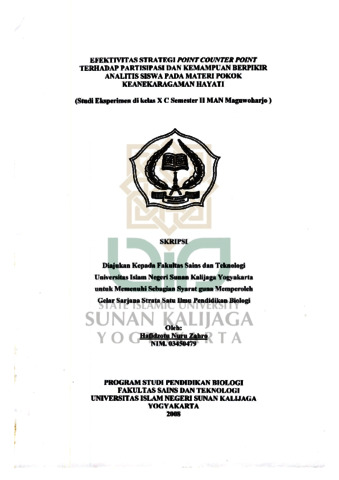 Text (EFEKTIVITAS STRA TEGI POINT COUNTER POINT TERHADAP PARTISIPASI DAN KEMAMPUAN BERPIKIR ANALITIS SISW A PADA MATERI PO KOK KEANEKARAGAMAN HAYATI (STUDI EKSPERIMEN DI KELAS X C SEMESTER II MAN MAGUWOHARJO ))