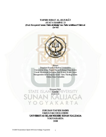 Hanifah, NIM.: 03531324 (2008) TAFSIR SURAT AL-HUU JURATT AYAT 6 SAMPAI 13 (STUDI KOMPARATIF ANTARA TAFSIR AL-MARAGI DAN TAFSIR AL-MIZZAN FI TAFSIR AL- QUR’AN). Skripsi thesis, UIN SUNAN KALIJAGA YOGYAKARTA.