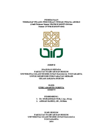 ETHIS AMARTIN NURFITA, NIM. 10340173 (2014) PEMIDANAAN TERHADAP PELAKU PERCOBAAN TINDAK PIDANA ABORSI (Studi Putusan Nomor 198/Pid.B/2009/PN.Btl dan Nomor 137/Pid.B/2010/PN.Btl). Skripsi thesis, UIN SUNAN KALIJAGA.