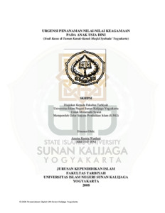 Annisa Kurnia Wardani, NIM.: 03470554 (2008) URGENSI PENANAMAN NILAI-NILAI KEAGAMAAN PADA ANAK USIA DINI (STUDI KASUS DI TAMAN KANAK-KANAK MASJID SYUHADA’ YOGYAKARTA). Skripsi thesis, UIN SUNAN KALIJAGA YOGYAKARTA.