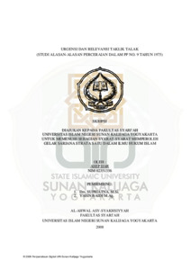 Text (URGENSI DAN RELEVANSI TAKLIK TALAK (STUDI ALASAN-ALASAN PERCERAIAN DALAM PP NO. 9 TAHUN 1975))