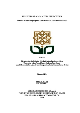 FARIDA HILMI, NIM. 10540030 (2014) MISS WORLD DALAM MEDIA DI INDONESIA (ANALISIS WACANA BERPERSPEKTIF GENDER DI KORAN SINDO DAN REPUBLIKA). Skripsi thesis, UIN SUNANKALIJAGA YOGYAKARTA.