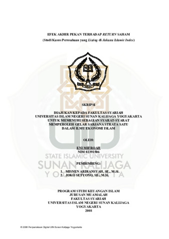Eni Mifroah, NIM.: 02391506 (2008) EFEK AKHIR PEKAN TERHADAP RETURN SAHAM (STUDI KASUS PERUSAHAAN YANG LISTING DI JAKARTA ISLAMIC INDEX). Skripsi thesis, UIN SUNAN KALIJAGA YOGYAKARTA.