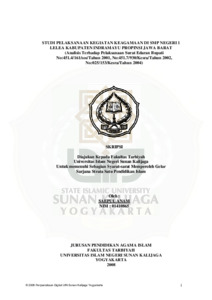Saepul Anam, NIM.: 01410865 (2008) STUDI PELAKSANAAN KEGIATAN KEAGAMAAN DI SMP NEGERI 1 LELEA KABUPATEN INDRAMAYU PROPINSI JAWA BARAT (Analisis Terhadap Pelaksanaan Surat Edaran Bupati No:451.4/161/sos/Tahun 2001, No:451.7/930/Kesra/Tahun 2002, No:025/153/Kesra/Tahun 2004). Skripsi thesis, UIN SUNAN KALIJAGA YOGYAKARTA.