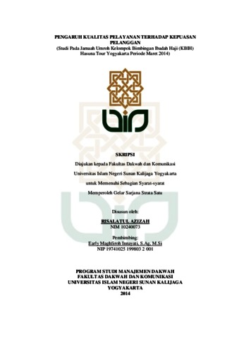 Text (PENGARUH KUALITAS PELAYANAN TERHADAP KEPUASAN PELANGGAN (STUDI PADA JAMAAH UMROH KELOMPOK BIMBINGAN IBADAH HAJI (KBIH) HASUNA TOUR YOGYAKARTA PERIODE MARET 2014))