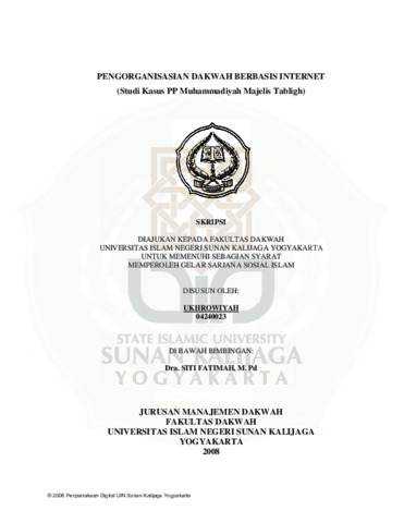 Ukhrowiyah, NIM.: 04240023 (2008) PENGORGANISASIAN DAKWAH BERBASIS INTERNET (Studi Kasus PP Muhammadiyah Majelis Tabligh). Skripsi thesis, UIN SUNAN KALIJAGA YOGYAKARTA.
