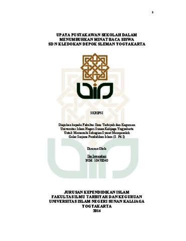 IKA ISWANDARI, NIM 10470040 (2015) UPAYA PUSTAKAWAN SEKOLAH DALAM MENUMBUHKAN MINAT BACA SISWA SD N KLEDOKAN DEPOK SLEMAN YOGYAKARTA. Skripsi thesis, UIN SUNAN KALIJAGA.