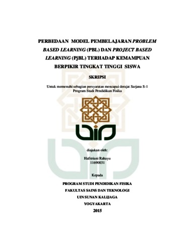 HAFITRIANI RAHAYU, NIM. 11690031 (2015) PERBEDAAN MODEL PEMBELAJARAN PROBLEM BASED LEARNING (PBL) DAN PROJECT BASED LEARNING (PjBL) TERHADAP KEMAMPUAN BERPIKIR TINGKAT TINGGI SISWA. Skripsi thesis, UIN SUNAN KALIJAGA YOGYAKARTA.