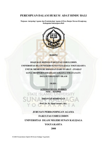 Text (PEREMPUAN DALAM HUKUM ADAT HINDU BALI TINJAUAN ANTRPOLOGI AGAMA DAN FEMINIMOLOGI AGAMA DI DESA BANJAR DAWAN KLUNGKUNG KABUPATEN SEMARAPURA BAL)