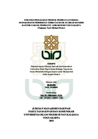 Text (STRATEGI PEMASARAN PRODUK PEMBIAYAAN SKEMA MURABAHAH DI PERSEROAN TERBATAS BANK SYARIAH MANDIRI KANTOR CABANG PEMBANTU AMBARUKMO YOGYAKARTA (TINJAUAN TEORI MICHAEL PORTER))