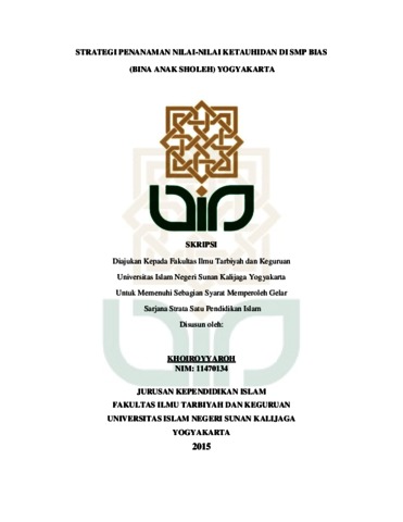 KHOIROYYAROH, NIM. 11470134 (2015) STRATEGI PENANAMAN NILAI-NILAI KETAUHIDAN DI SMP BIAS (BINA ANAK SHOLEH) YOGYAKARTA. Skripsi thesis, UIN SUNAN KALIJAGA.