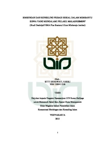 SITTI ERNAWATI, SSOSI, NIM. 1320411218 (2015) BIMBINGAN DAN KONSELING PRIBADI SOSIAL DALAM MEMBANTU SISWA YANG MENGALAMI PRILAKU MALADJUSMENT (STUDI DESKRIPTIF SMA PLUS BUSTANUL ULUM MLOKOREJO JEMBER). Masters thesis, UIN SUNAN KALIJAGA YOGYAKARTA.