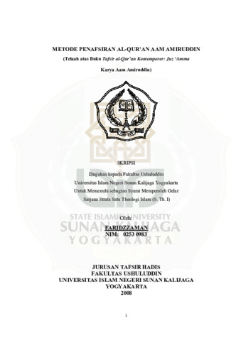 Text (METODE PENAFSIRAN AL-QUR'AN AAM AMIRUDDIN (Telaah atas Buku Tafsir al-Qur'an Kontemporer: Juz 'Amma Karya Aam Amiruddin))