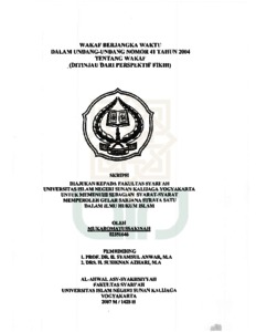 MUKAROMATUSSAKINAH, NIM. 02351646 (2007) WAKAF BERJANGKA WAKTU DALAM UNDANG-UNDANG NOMOR 41 TAHUN 2004 TENTANG WAKAF . (DITINJAU DARI PERSPEKTIF FIKIH). Skripsi thesis, FAKULTAS SYARIAH UIN SUNAN KALIJAGA YOGYAKARTA.