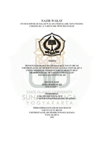 Text (NAZIR WAKAF STUDI KOMPARASI DALAM WACANA FIQIH KLASIK DAN UU NO. 41 TAHUN 2004 TENTANG WAKAF)
