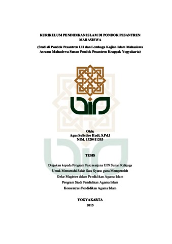 AGUS SULISTIYO HADI, SPDI, NIM. 1320411203 (2015) KURIKULUM PENDIDIKAN ISLAM DI PONDOK PESANTREN MAHASISWA (STUDI DI PONDOK PESANTREN UII DAN LEMBAGA KAJIAN ISLAM MAHASISWA ASRAMA MAHASISWA SUNAN PONDOK PESANTREN KRAPYAK YOGYAKARTA). Masters thesis, UIN SUNAN KALIJAGA YOGYAKARTA.