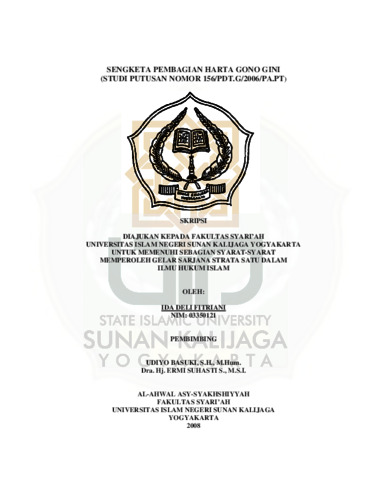 Ida Deli Fitriani, NIM.: 03350121 (2008) SENGKETA PEMBAGIAN HARTA GONO GINI (STUDI PUTUSAN NOMOR 156-PDT.G-2006-PA.PT). Skripsi thesis, UIN SUNAN KALIJAGA YOGYAKARTA.