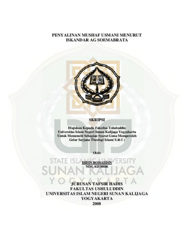 Didin Rohaedin, NIM.: 02530886 (2008) PENYALINAN MUSHAF USMANI MENURUT ISKANDAR AG SOEMABRATA. Skripsi thesis, UIN SUNAN KALIJAGA YOGYAKARTA.