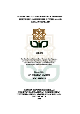 AFI FARKHAN MASRUR, NIM: 11470114 (2015) PENDIDIKAN ENTREPRENEURSHIP UNTUK MEMBENTUK KEMANDIRIAN SANTRI DIFABEL DI PONPES AL-AMIN SLEMAN YOGYAKARTA. Skripsi thesis, UIN SUNAN KALIJAGA YOGYAKARTA.