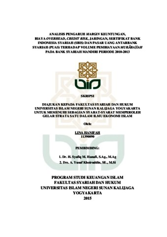LINA HANIFAH, NIM. 11390090 (2015) ANALISIS PENGARUH MARGIN KEUNTUNGAN, BIAYA OVERHEAD, CREDIT RISK, JARINGAN, SERTIFIKAT BANK INDONESIA SYARIAH (SBIS) DAN PASAR UANG ANTARBANK SYARIAH (PUAS) TERHADAP VOLUME PEMBIAYAAN MURĀBAḤAH PADA BANK SYARIAH MANDIRI PERIODE 2010-2013. Skripsi thesis, UIN SUNAN KALIJAGA YOGYAKARTA.