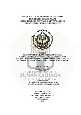 Text (PERAN POLITIK PEREMPUAN DI INDONESIA PERSPEKTIF HUKUM ISLAM (STUDI TENTANG KUOTA 30% KETERWAKILAN PEREMPUAN DI LEMBAGA LEGISLATIF))
