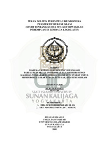 MUKLIS IKHSANI, NIM.: 01371130 (2009) PERAN POLITIK PEREMPUAN DI INDONESIA PERSPEKTIF HUKUM ISLAM (STUDI TENTANG KUOTA 30% KETERWAKILAN PEREMPUAN DI LEMBAGA LEGISLATIF). Skripsi thesis, UIN Sunan Kalijaga Yogyakarta.