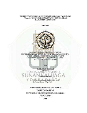 NAFILATUR ROHMAH, NIM.: 04360073 (2009) TRADISI PEMINANGAN OLEH PEREMPUAN DALAM PANDANGAN ULAMA NU DAN MUHAMMADIYAH DI DESA PACIRAN KABUPATEN LAMONGAN. Skripsi thesis, UIN Sunan Kalijaga Yogyakarta.