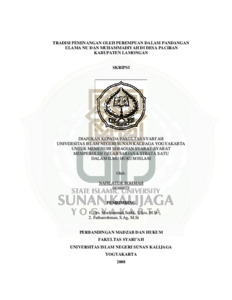 ABSTRAK Peminangan dalam ilmu fiqh disebut khitbah yang berarti permintaan. Sedangkan menurut istilah, peminangan adalah pernyataan atau permintaan dari seorang laki-laki kepada pihak perempuan untuk menikahinya, baik dilakukan oleh laki-laki itu secara langsung atau dengan perantara pihak lain yang dipercayainya sesuai dengan ketentuan agamanya. Di dalam masyarakat Paciran, mereka mempunyai aturan dan adat istiadat sendiri yang berbeda dengan peminangan masyarakat pada umumnya dan perbedaan itu cenderung lebih memberatkan bagi pihak perempuan. Penyusun ingin melihat kejelasan atau status hukum dari pelaksanaan peminangan mereka agar tidak terjadi ketimpangan dan salah perspektif antara hukum peminangan mereka dengan hukum Islam atau aturan yang berlaku pada umumnya. Tradisi peminangan tersebut biasa disebut dengan lamaran (meminang). Pada umumnya tradisi peminangan tersebut sebagai berikut: mula-mula diawali dengan nontoni yaitu dari pihak calon pengantin perempuan baik melalui orang tuanya atau keluarganya datang ke rumah orang tua calon pengantin laki-laki yang dipilih anaknya untuk ditembung (diminta) jadi calon menantunya kepada orang tua laki-laki. Setelah terjadi kesepakatan antara orang tua laki-laki dan orang tua perempuan, maka kedua calon laki-laki dan perempuan tersebut diikat yang dalam bahasa daerah Paciran disebut dengan gemblongan (tunangan) dalam hal ini disebut dengan Dudut Mantu. Sedangkan segala biaya ditanggung oleh pihak perempuan, sehingga menjadikan masyarakat perempuan di Desa Paciran mengalami suatu beban baik secara materiil (uang atau barang) maupun immaterial (mental). Tahap yang terakhir adalah Golek Dino (mencari hari) pernikahan. Penyusun menggunakan metode observasi dengan cara terlibat langsung ke masyarakat (penelitian lapangan) dengan memperbandingkan antara pandangan ulama NU dan Muhammadiyah dalam menyikapi tradisi tersebut, sehingga memperoleh data yang jelas untuk persesuaiannya dalam hukum Islam. Dengan melihat aspek-aspek kemadaratan tradisi peminangan tersebut dalam hukum Islam, sehingga dapat diketahui kejelasan atau status hukum dari pelaksanaan peminangan tersebut. Penyusun berusaha memberikan solusi atau saran dalam rangka penyempurnaan terhadap tradisi yang dirasa aneh atau berbeda dengan daerah-daerah lain agar tidak terjadi ketimpangan sosial sehingga menyebabkan berkurangnya harga diri seorang perempuan di Desa Paciran. Berdasarkan pendekatan dan metode yang digunakan, terungkap bahwa peminangan di Desa Paciran menurut pandangan ulama NU dan Muhammadiyah serta masyarakat Paciran pada umumnya, pada dasarnya tidak menentukan keharusan siapa dari salah satu pihak untuk melamar, oleh sebab itu tradisi peminangan tersebut tidak bertentangan dengan syari'at Islam. Akan tetapi tradisi peminangan tersebut oleh masyarakat dirasa adanya ketidak adilan gender bagi perempuan, karena dalam tradisi tersebut lebih memberatkan dibanding dengan tardisi peminangan yang ada di daerah lain pada umumnya.