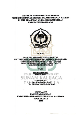 Text (TINJAUAN HUKUM ISLAM TERHADAP PEMBERIAN HADIAH (BONUS) DALAM SIMPANAN WADI'AH DI BMT BINA INSAN MULIA (BIMA) MUNTILAN KABUPATEN MAGELANG)