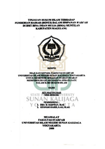 Siti Maftuchah, NIM.: 02381356 (2008) TINJAUAN HUKUM ISLAM TERHADAP PEMBERIAN HADIAH (BONUS) DALAM SIMPANAN WADI'AH DI BMT BINA INSAN MULIA (BIMA) MUNTILAN KABUPATEN MAGELANG. Skripsi thesis, UIN SUNAN KALIJAGA YOGYAKARTA.