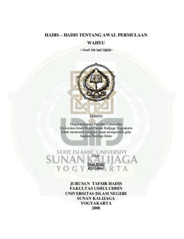 Dian Rizki, NIM.: 02530861 (2009) HADIS – HADIS TENTANG AWAL PERMULAAN WAHYU (studi ma’anil hadis). Skripsi thesis, UIN Sunan Kalijaga Yogyakarta.
