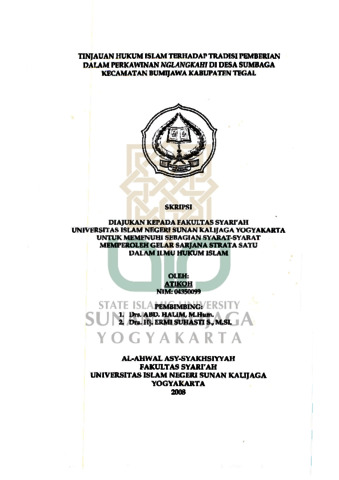 Text (TINJAUAN HUKUM ISLAM TERHADAP TRADISI PEMBERIAN DALAM PERKAWINAN NGLANGKAHI DI DESA SUMBAGA KECAMATAN BUMIJAWA KABUPATEN TEGAL)