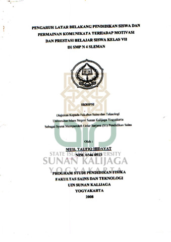 Muh. Taufiq Hidayat, NIM.: 03460513 (2008) PENGARUH LATAR BELAKANG PENDIDIKAN SISWA DAN PERMAINAN KOMUNIKATA TERHADAP MOTIVASI DAN PRESTASI BELAJAR SISWA KELAS VII DI SMP N 4 SLEMAN. Skripsi thesis, UIN SUNAN KALIJAGA YOGYAKARTA.