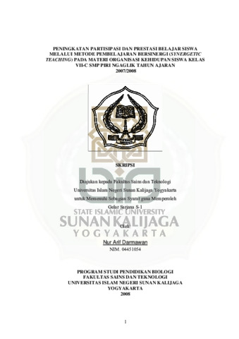 Text (PENINGKATAN PARTISIPASI DAN PRESTASI BELAJAR SISWA MELALUI METODE PEMBELAJARAN BERSINERGI (SYNERGETIC TEACHING) PADA MATERI ORGANISASI KEHIDUPAN SISWA KELAS VII-C SMP PIRI NGAGLIK TAHUN AJARAN 2007/2008)
