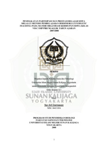 Nur Arif Darmawan, NIM.: 04451054 (2009) PENINGKATAN PARTISIPASI DAN PRESTASI BELAJAR SISWA MELALUI METODE PEMBELAJARAN BERSINERGI (SYNERGETIC TEACHING) PADA MATERI ORGANISASI KEHIDUPAN SISWA KELAS VII-C SMP PIRI NGAGLIK TAHUN AJARAN 2007/2008. Skripsi thesis, UIN Sunan Kalijaga Yogyakarta.