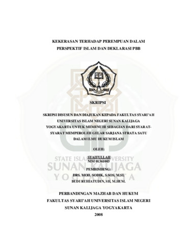 Syaifullah, NIM.: 01361003 (2008) KEKERASAN TERHADAP PEREMPUAN DALAM PERSPEKTIF ISLAM DAN DEKLARASI PBB. Skripsi thesis, UIN SUNAN KALIJAGA YOGYAKARTA.