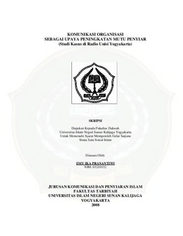 Emy Ika Pranantiwi, NIM.: 03210132 (2008) KOMUNIKASI ORGANISASI SEBAGAI UPAYA PENINGKATAN MUTU PENYIAR (STUDI KASUS DI RADIO UNISI YOGYAKARTA). Skripsi thesis, UIN SUNAN KALIJAGA YOGYAKARTA.