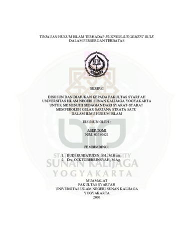 Asep Tomi, NIM.: 03380421 (2008) TINJAUAN HUKUM ISLAM TERHADAP BUSINESS JUDGEMENT RULE DALAM PERSEROAN TERBATAS. Skripsi thesis, UIN SUNAN KALIJAGA YOGYAKARTA.