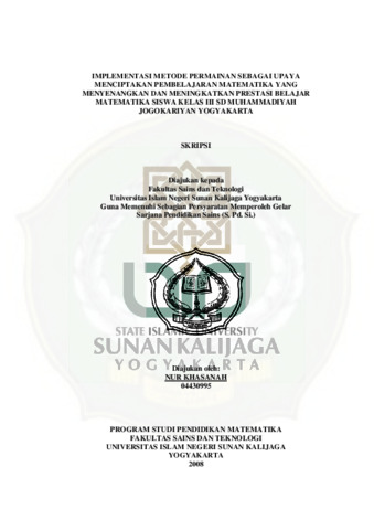 Text (IMPLEMENTASI METODE PERMAINAN SEBAGAI UPAYA MENCIPTAKAN PEMBELAJARAN MATEMATIKA YANG MENYENANGKAN DAN MENINGKATKAN PRESTASI BELAJAR MATEMATIKA SISWA KELAS III SD MUHAMMADIYAH JOGOKARIYAN YOGYAKARTA)