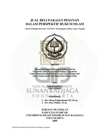 LILIS ZULAEKHA S, NIM.: 03380455 (2008) JUAL BELI PAKAIAN PESANAN DALAM PERSPEKTIF HUKUM ISLAM. Skripsi thesis, UIN Sunan Kalijaga Yogyakarta.