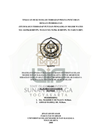 Text (TINJAUAN HUKUM ISLAM TERHADAP PIDANA PENCURIAN DENGAN PEMBERATAN (STUDI KASUS TERHADAP PUTUSAN PENGADILAN NEGERI WATES NO: 142/PID.B/2007/PN. WT DAN NO: 91/PID. B/2007/PN. WT TAHUN 2007))