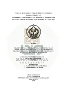 Dalam kehidupan manusia sebagai mahluk sosial tidak lepas dari aktifitas sehari-hari yang membutuhkan satu sama lain. Namun terkadang dalam bertindak dan bermasyarakat masih banyak yang merugikan orang lain. Sehingga sangat perlu dibuat suatu undang-undang untuk dipatuhi guna memenuhi kebutuhan masyarakat dalam sisi hukum dan menuntun setiap anggota masyarakat untuk tidak berbuat serta bertindak sesuatu yang merugikan orang lain dan diri sendiri. Salah satu bentuk pelanggaran terhadap undang-undang dan merugikan masyarakat adalah pencurian harta orang lain, terlebih pencurian tersebut diikuti atau didahului dengan perbuatan lain yang dapat memberatkan hukuman. Tindak pidana tersebut harus mendapatkan sanksi yang setimpal dengan perbuatannya sehingga keadilan dapat ditegakan. Daerah Kabupaten Kulon Progo yang mayoritas masyarakatnya beragama Islam seharusnya mampu memberikan contoh baik bagi kaum minoritas. Namun dalam bermasyarakat terutama dalam memenuhi kebutuhan hidup justru masih banyak ditemui pelanggaran, terutama pencurian dan terkadang disertai dengan hal yang memberatkan. Ketika hal ini diteliti justru pencurian dengan pemberatan menduduki peringkat pertama di daerah Kabupaten Kulon Progo. Dalam hukum Pidana positif perbuatan pencurian dengan pemberatan diatur dalam Pasal 363 Kitab Undang-undang Hukum Pidana (KUHP). Adapun yang dimaksud pencurian dengan pemberatan yaitu perbuatan pencurian yang didalam bentuk yang pokok ditambah unsur lain sehingga ancaman hukumannya menjadi diperberat atau bertambah. Pokok permasalahan dari penyusunan skripsi ini adalah bagaiman tinjauan hukum Islam mengenai putusan hakim terhadap pencurian dengan pemberatan yang terjadi di wilayah kabupaten Kulon Progo yang telah masuk dan di sidangkan pada Pengadilan Negeri Wates. Untuk menganalisa permasalahan ini penyususn menggunakan pendekatan normatif yaitu pendekatan dari norma-norma hukum Islam yang akan merujuk pada al-Qur'an dan al-Hadis. Serta yuridis yaitu pendekatan norma-norma hukum positif yang merujuk pada KUHP, terhadap praktek putusan perkara pencurian dengan pemberatan oleh hakim Pengadilan Negeri Wates. Kesimpulan dari penelitian terhadap putusan hakim mengenai pencurian dengan pemberatan yang terjadi di wilayah hukum Pengadilan Negeri Wates menggunakan patokan seutuhnya dalam mengambil keputusan adalah dengan KUHP serta dengan KUHAP dalam beracara. Namun hal ini ditinjau dari hukum Islam apabila telah memenuhi unsur-unsurnya diperbolehkan tidak dijatuhi hukuman maksimal yaitu hukum potong tangan.