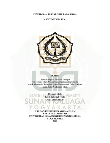 Kelik Khoirul Huda, NIM.: 01410909 (2008) PENDIDIKAN JURNALISTIK PADA SISWA MAN YOGYAKARTA I. Skripsi thesis, UIN SUNAN KALIJAGA YOGYAKARTA.