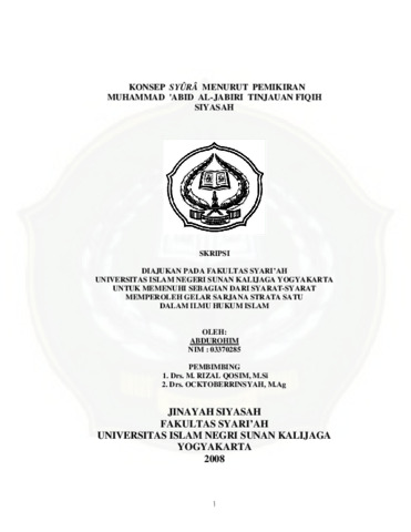 Abdurohim, NIM.: 03370285 (2008) KONSEP SYURA MENURUT PEMIKIRAN MUHAMMAD 'ABID AL-JABIRI TINJAUAN FIQIH SIYASAH. Skripsi thesis, UIN SUNAN KALIJAGA YOGYAKARTA.